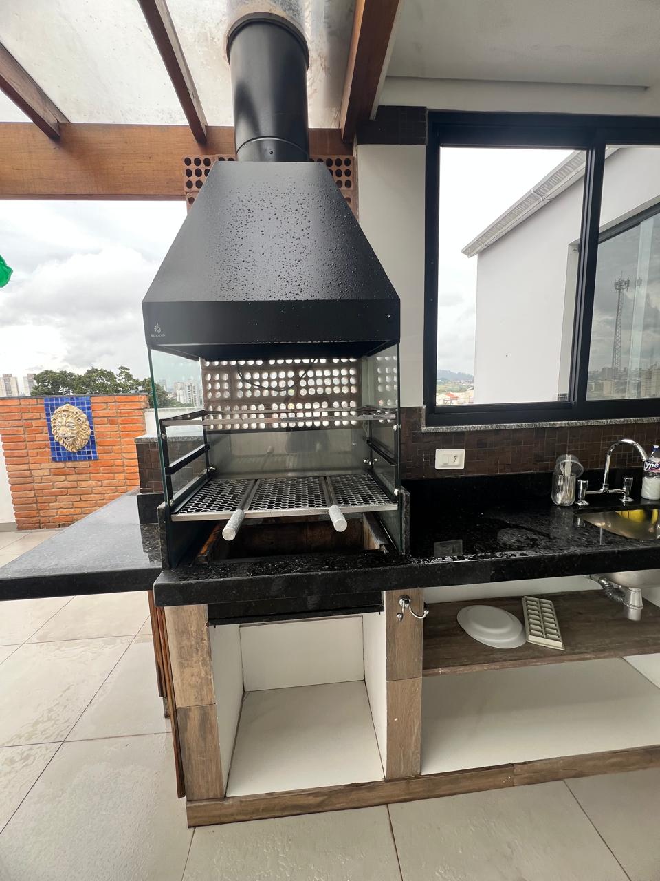 – Ampla cobertura – Churrasqueira + Banheiro (área Gourmet)