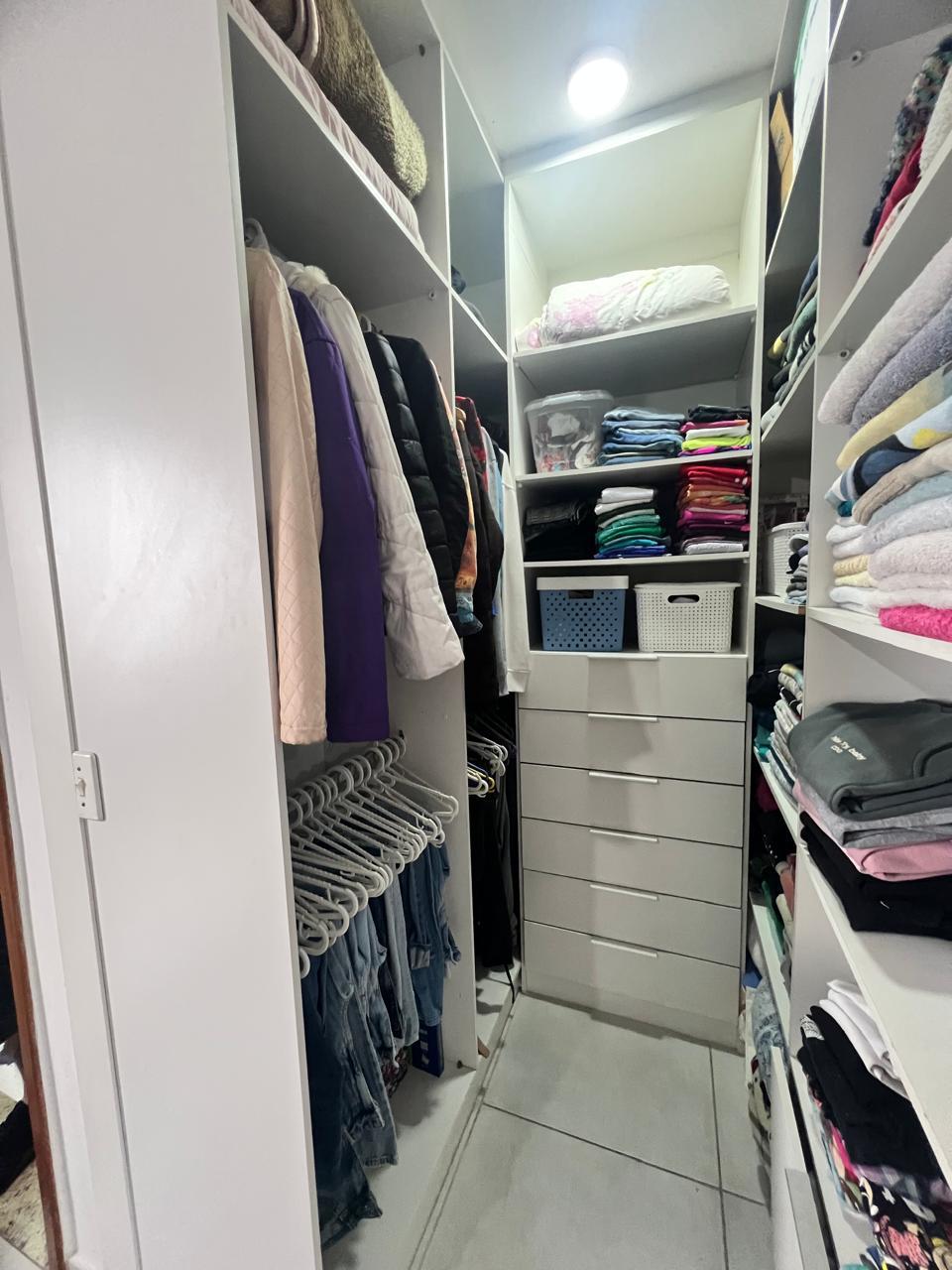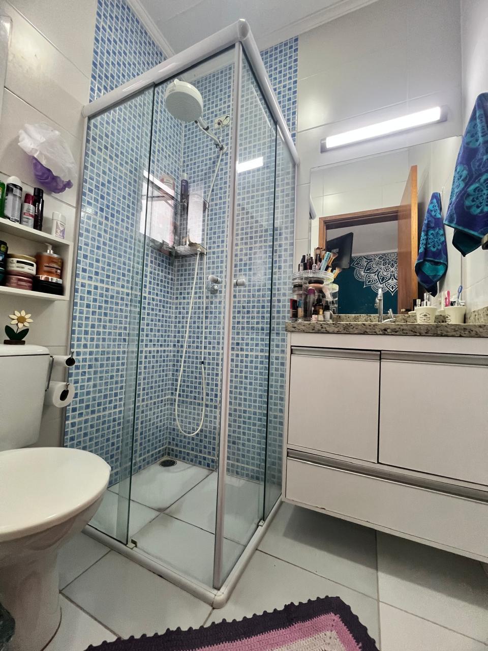 Suíte com closet e sacada envidraça, Banheiro com gabiente/espelho/box